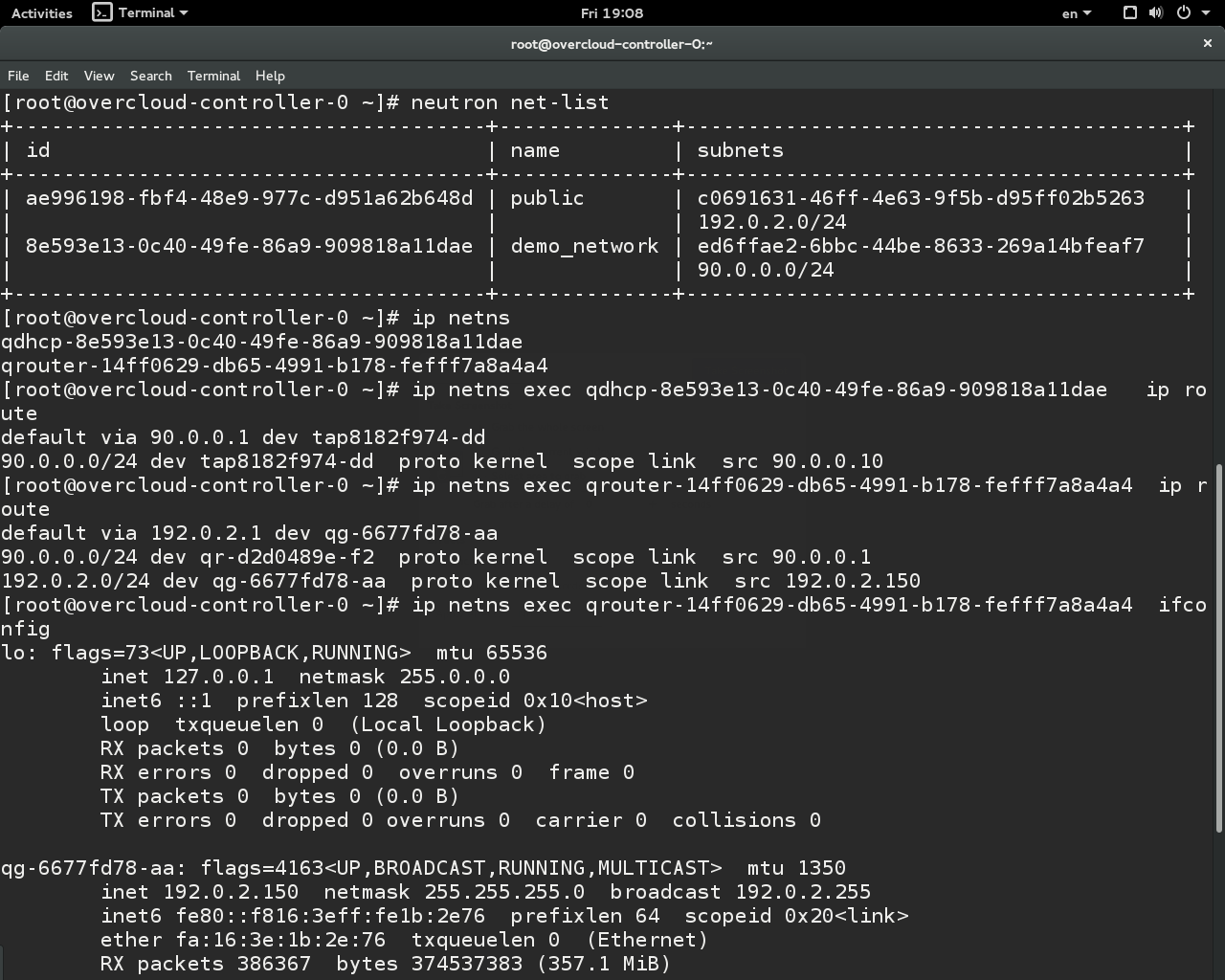 `ip netns` on overcloud controller